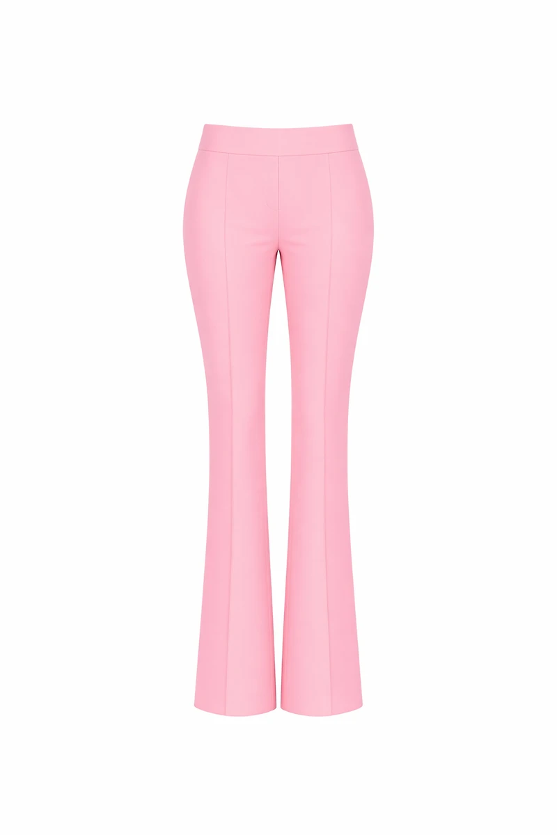 Chic high-waisted trousers designed with a smooth waistband and a clean, streamlined silhouette. Fitted through the hips and thighs, they subtly flare from the knee to create an elegant, elongated shape. The minimalist tailoring and soft structure make them a versatile essential for both refined office looks and elevated evening styling. Composition: 90% Polyester 10% Elastane Made in Italy.