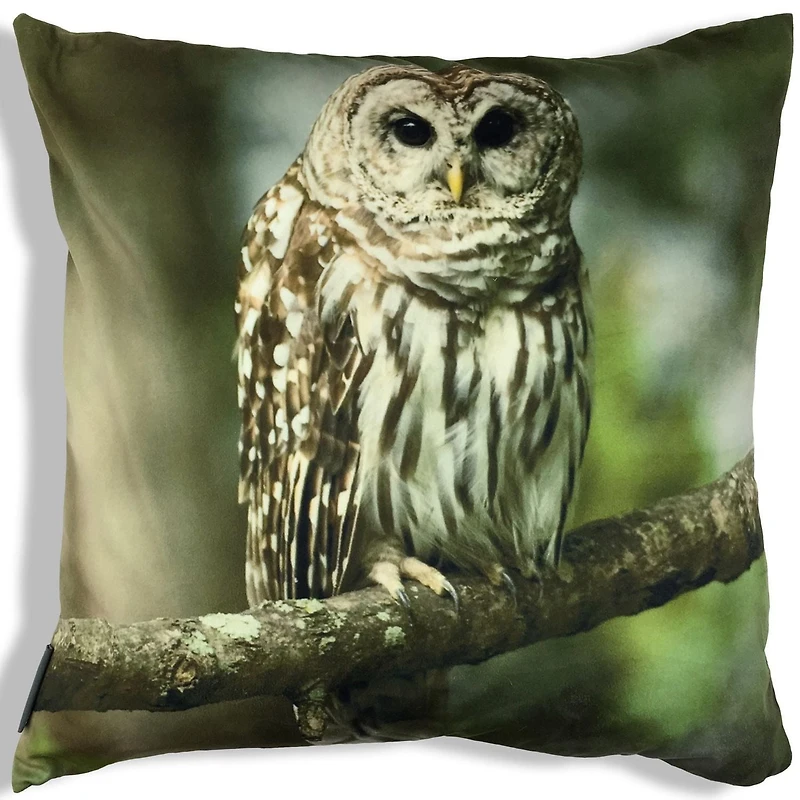 This cushion features an image of an owl resting on a branch in the forest. The cushion is made from 100% polyester fabrics and a feather insert is included. The cover is also removable making it easy to clean. Perfect for your spring/summer collection and the cottage