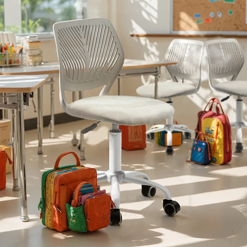 Bring charm and function to her bedroom with the Homy Casa Study Chair. Featuring a soft pink seat and leaf-cut ergonomic back, it’s perfect for homework, art, or screen time. The rolling wheels and height adjustment allow growing kids to work comfortably.