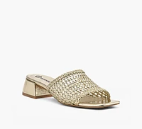A low-rise, stacked heel meets a comfy square-tipped sandal in Isla, WISHBONE’s latest take on a summer classic. Adopting a fuss-free demeanour, this pair's slip-on profile features a woven top strap that lets peeks of skin shine through, while the open-toe design shoes off your freshly polished toes. Not to mention their metallic finish, certain to catch the sunlight with each step.