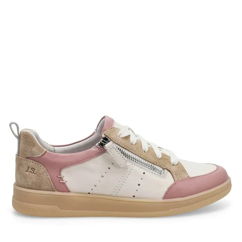 Combining elegance and comfort, the Josef Seibel JADE 05 sneaker is designed to accompany your everyday life with style. Its feminine and contemporary design stands out with a premium leather upper in multiple shades and contrasting panels, adding a modern and refined touch. Practical and comfortable, it features a functional side zipper combined with classic lacing, allowing for quick slip-on and optimal fit. A rear tab also makes it easy to slip on every day. Inside, the padded, removable insole offers personalized comfort, while the shock-absorbing rubber outsole ensures excellent grip on a variety of surfaces. Versatile and stylish, the JADE 05 is ideal for everyday errands, weekend outings, or casual urban outfits. Features: Heel: Flat heel Upper: Leather Lining: Textile Sole: Rubber Width: Medium