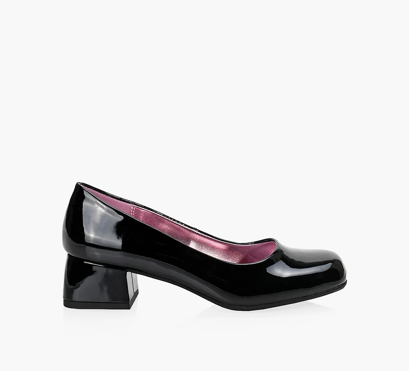 Details Sizing information: True to size Material: Faux patent Lining: Faux leather Sole: Rubber Insole: Faux leather Heel height: 25mm