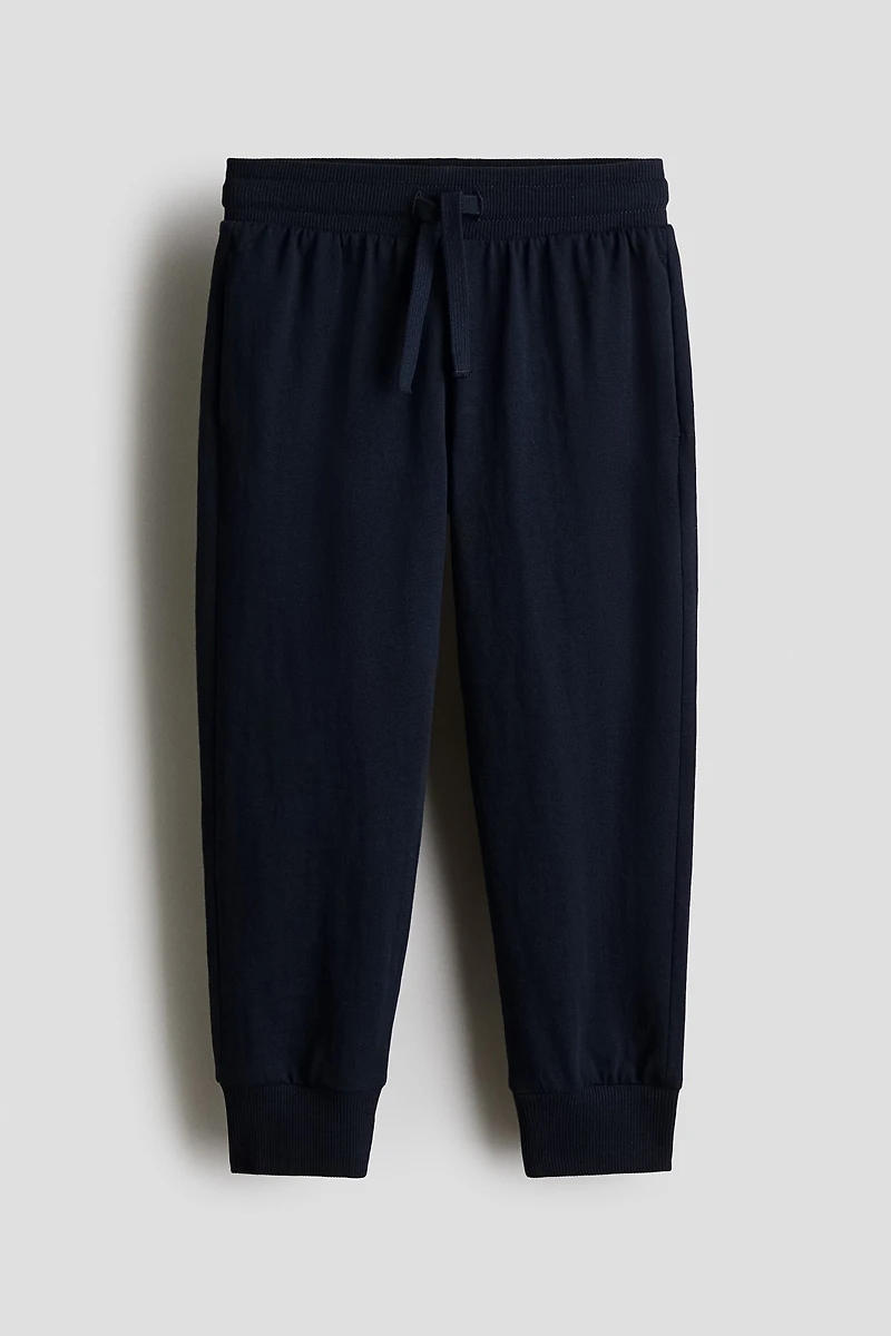 Joggers in soft jersey. Drawstring and ribbed elastic at waistband, discreet side pockets, and ribbed hems.