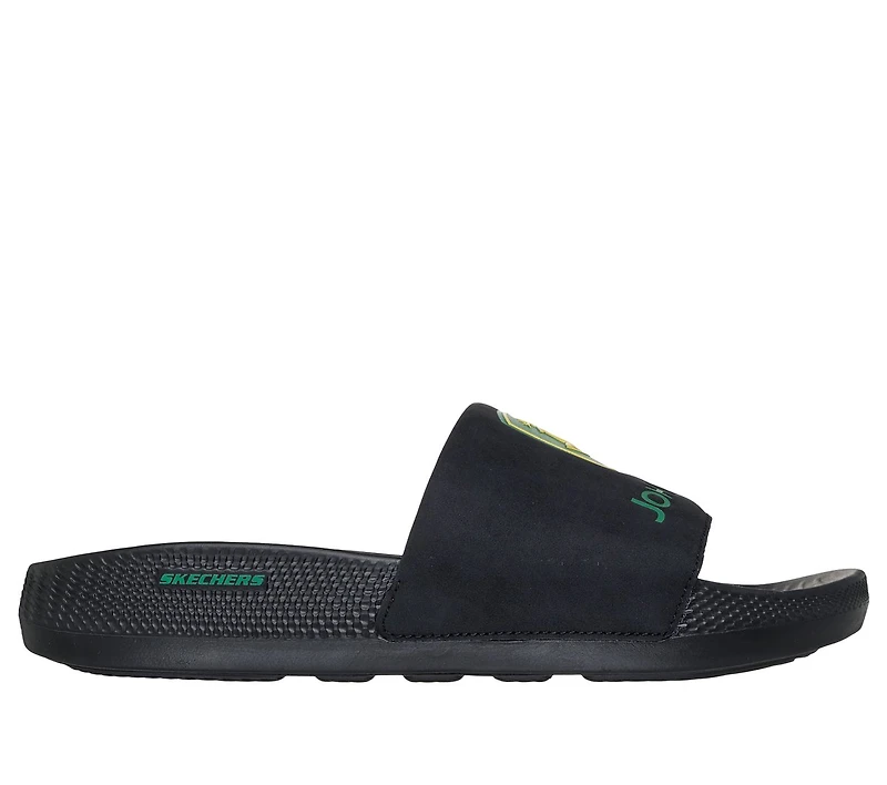 Stay supported in all-day comfort with Skechers x John Deere: Low Slider - Big Logo. This casual slide sandal features a single synthetic crossband upper with a cushioned comfort footbed.