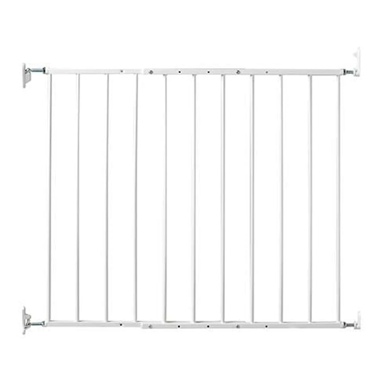The KidCo® Quick Install Safeway® baby safety gate is specifically designed for top of stairs use, but can also be used in hallways or as a room divider. Provides maximum safety at the top of stairs and in high traffic doorways. Features include stop pin to prevent gate from swinging over open stairs, quick release hardware and a mounting template for safe installation.