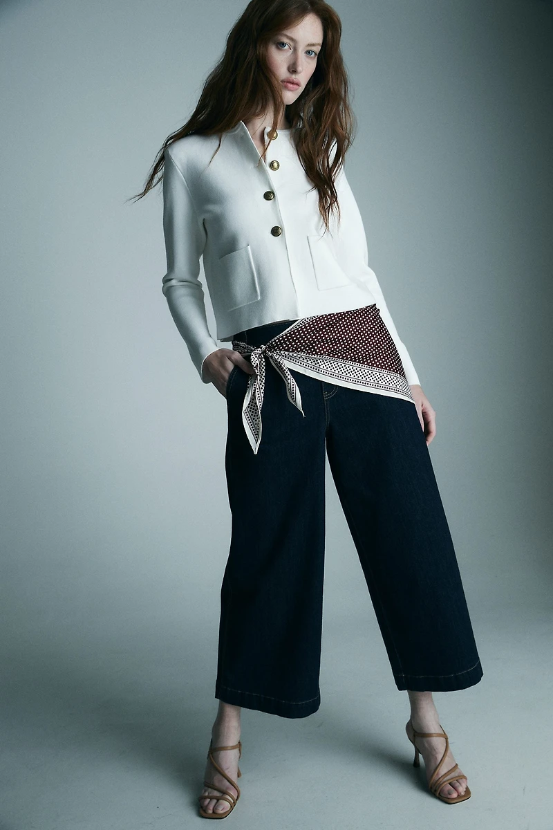 This knitted blazer offers a refined, modern touch to any wardrobe. Its structured design enhances your proportions, seamlessly pairing with tailored pieces or casual denim for versatile styling that suits any shape.