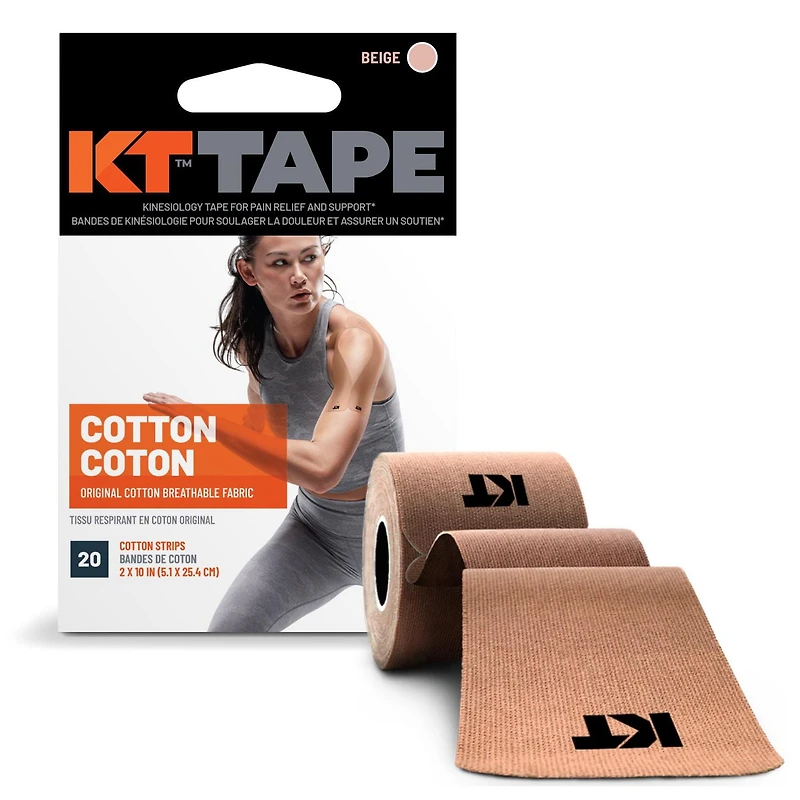 Need support that can endure your workouts and activity? KT Tape® Original is for you. It has been designed to relieve pain and provide support, staying in place for 1-3 days through showers, humidity, cold, and even the pool.Just like KT Tape Pro®, KT Tape® Original features an adhesive formulated to last as long as you do. The KT Tape® elastic core delivers strong support for muscles, joints and tendons without restricting comfort and range of motion.*KT Tape® Original is pre-cut and ready to apply right out of the box. Pre-cut strips have rounded corners which help to prevent the corners from catching on clothing or the edges fraying. Each roll contains 20 pre-cut strips that are 10 inches long and 2 inches wide.KT Tape® products are Hypoallergenic, Latex-Free, Natural Rubber-Free! This means that our products have been designed and developed to contain fewer potential substances that can trigger allergic reactions. While our goal is to provide you products that won't cause any irritations, if you are known to have sensitive skin or prone to irritations, we recommend testing a small piece of KT Tape applied with no stretch on tougher skin such as the knee or forearm before utilizing our product line.