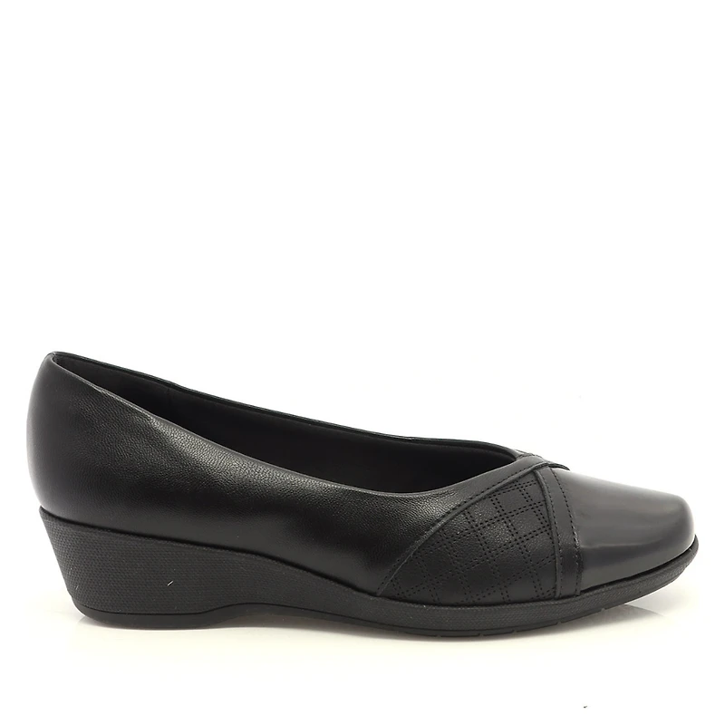 Elegant and comfortable, the PICCADILLY L1-143243V is a versatile shoe designed to accompany you through your day in style. Its refined design combines a smooth upper with a textured panel and a glossy patent leather toe, creating a modern and sophisticated contrast. Set on a stable wedge heel, this style offers a slight lift while ensuring excellent comfort with every step. Its lightweight construction and cushioned insole make it an ideal choice for work or everyday outings. Easy to pair with both professional and casual outfits, this shoe will quickly become a wardrobe staple. Features: Upper: synthetic leather Shiny patent leather toe Decorative textured panel Comfortable wedge heel Cushioned insole Durable, slip-resistant outsole