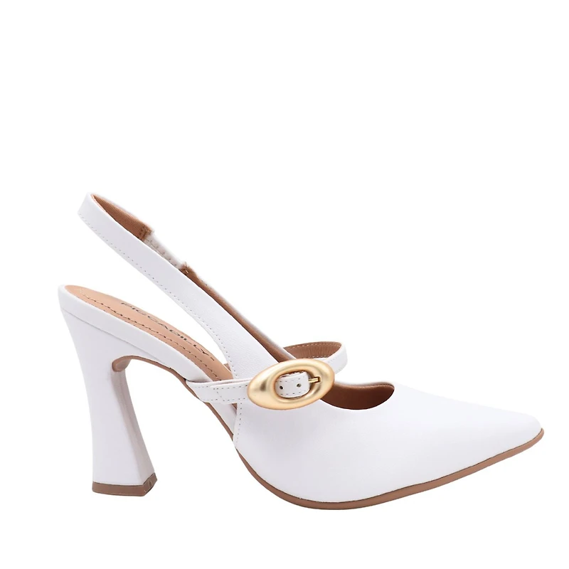 Featuring a pointed toe and a sculpted heel, this style combines femininity and character while offering secure support thanks to its adjustable back strap. Its luminous white hue pairs effortlessly with all your outfits, from a chic suit to a summer dress.
