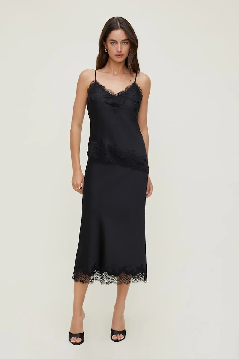 Lace Satin Midi Skirt