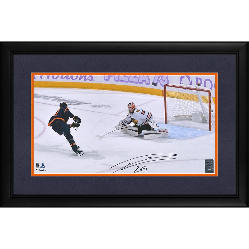 Leon Draisaitl Edmonton Oilers Autographed Framed 10" x 18" Goal vs. Chicago Blackhawks Photograph - Limited Edition of 29
