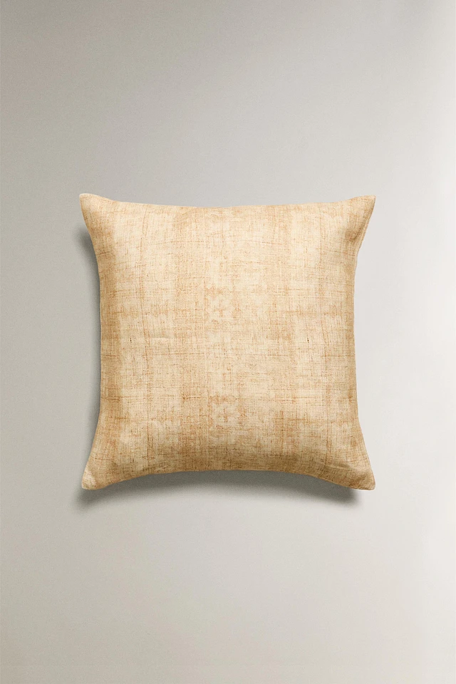 SATEEN AND LINEN THROW PILLOW COVER WITH DOTTED DESIGN