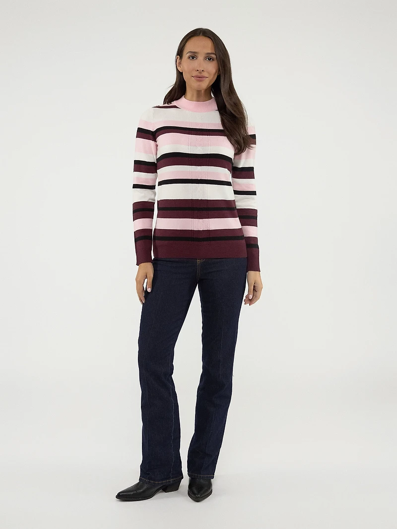 These striped sweaters add a pop of color to your wardrobe, available in two color combinations: pink/burgundy and blue/grey. The two buttons on the shoulder add an elegant and unique touch. With their fitted cut and hip-length design, they are perfect for flattering your silhouette while remaining comfortable. Pair them with jeans or pants for a casual chic look.