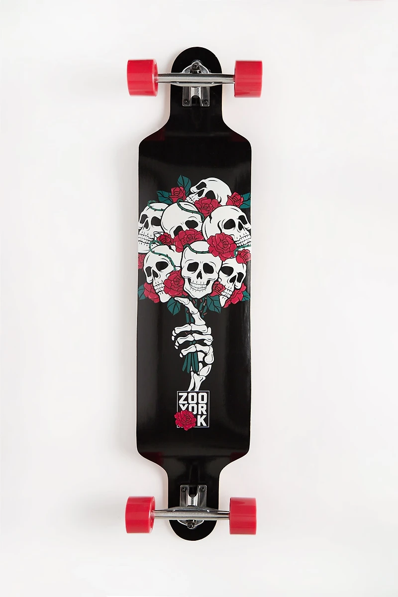 Pré-assemblé; prêt à roulerLongueur: 42"Roues : 70 mm de diamètre pour une glisse fluide et stableDureté : 78a duromètre pour une sensation souple et adhérente, idéale pour absorber les bosses et les viragesTrucks argentésRoues rougesLongboard de type "drop-down"Imprimé bouquet de crânes Zoo YorkConvient à tous les niveauxImporté par Zoo YorkProduit #4651-19072642