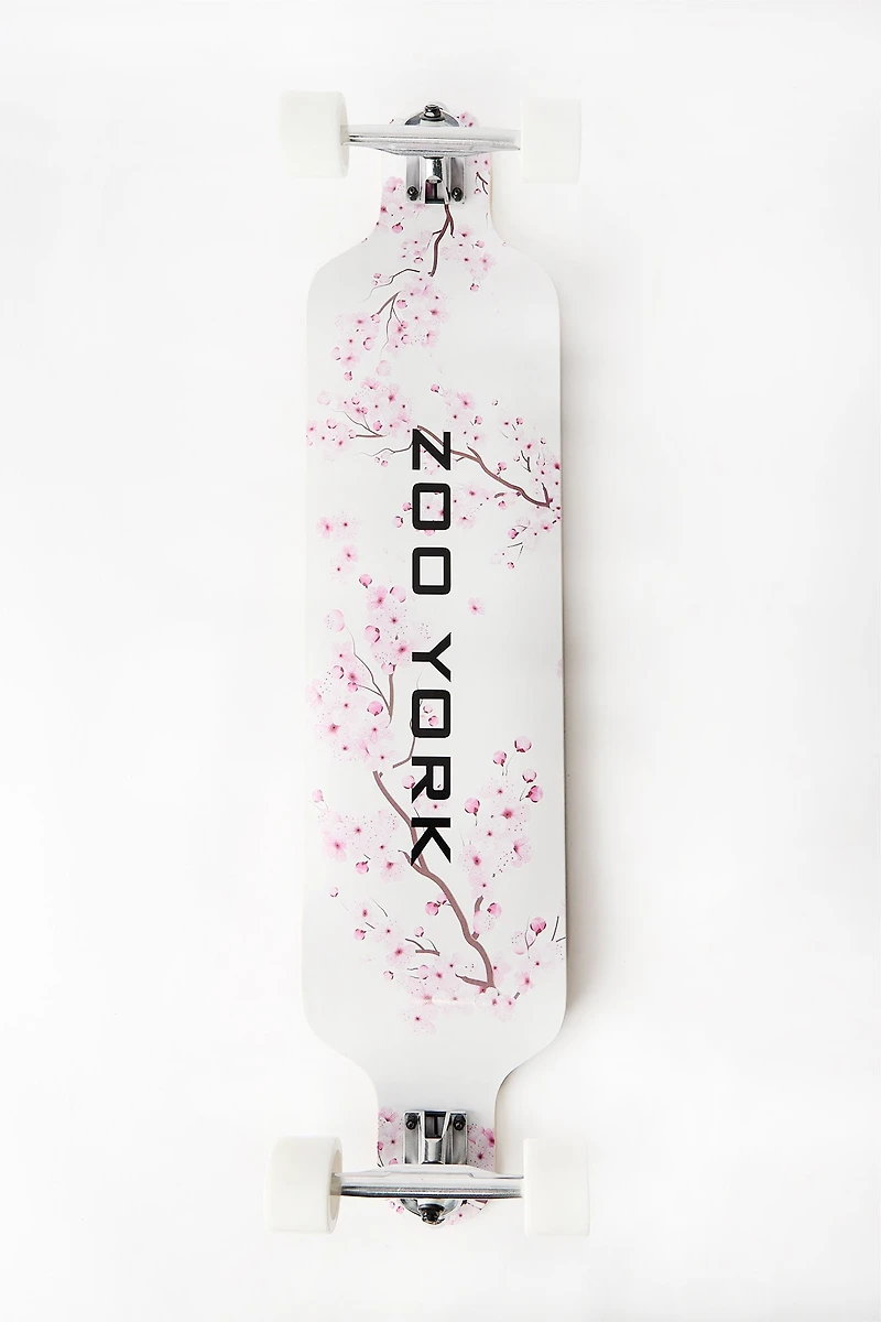 Pré-assemblé; prêt à roulerLongueur: 40"Roues : 70mm de diamètre pour une glisse fluide et stableDureté : 78a duromètre pour une sensation souple et adhérente, idéale pour absorber les bosses et les viragesTrucks argentésRoues blanchesLongboard de type "drop-down"Imprimé fleurs de cerisier Zoo YorkConvient à tous les niveauxImporté par Zoo YorkProduit #4651-19072643