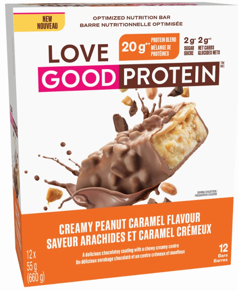Introducing Love Good Protein – The cleanest, most delicious protein bar you’ll find! An optimized nutrition bar with a protein blend featuring whey and collagen working together to help you achieve your wellness goals.Nourish your body with the delicious Creamy Peanut Caramel flavour.