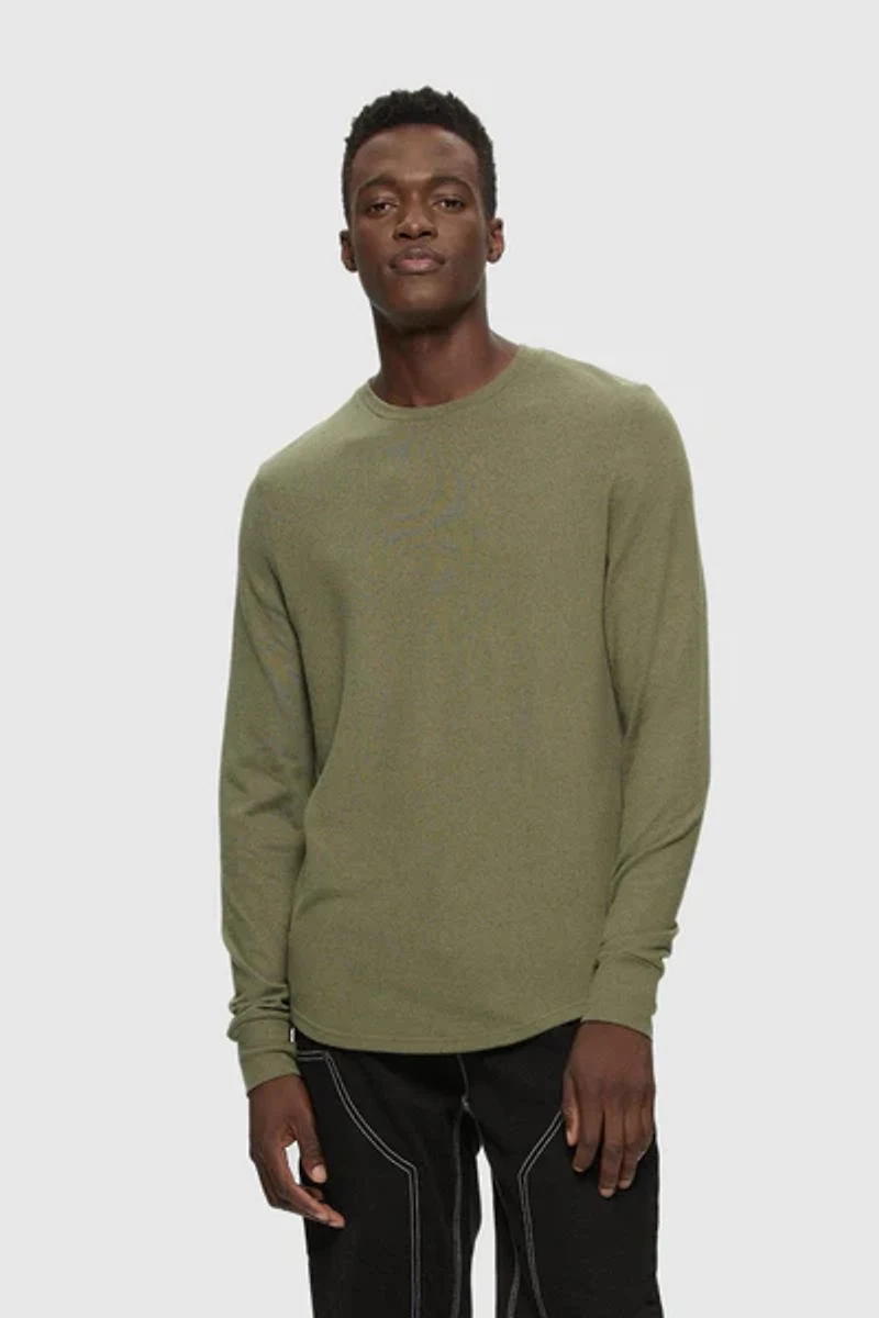 Our Double Scoop Sweater features a scooped hem extended body & sleeves with thumb holes at cuffs. The perfect long sleeve for layering or staying warm on the ski hill. Fits slim, size up for a regular fit.