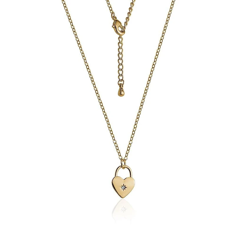 14kt Gold-plated Cable chain is accented by a Love Lock. Detailed Star setting of a full cut Crystal adorns this pendant. A romantic shield, this lightweight style is effortless for everyday and impactful for evening.Packaging: Delivered in an elegant and secure gift box.Luxury Designs is a trademarked brand belonging to a premiere jewellery design and manufacturing company based in Montreal, Canada. Bijoux Chateau Inc. prides itself on the ideals of providing affordable, high quality, design forward jewellery. We want to be your special accent and every day essential. A jewellery collection that is as unique as you are!Care instructions for your jewellery;We recommend removing your pieces prior to bathing or going swimming. Avoid your new piece(s) from coming into direct contact with hand sanitizer, harsh chemicals, chlorine, perfumes/body sprays and lotions/creams. Between wear’s, we advise that you place your jewellery in a box for safekeeping. To maintain, always use a soft cloth to gently wipe your jewellery.