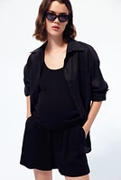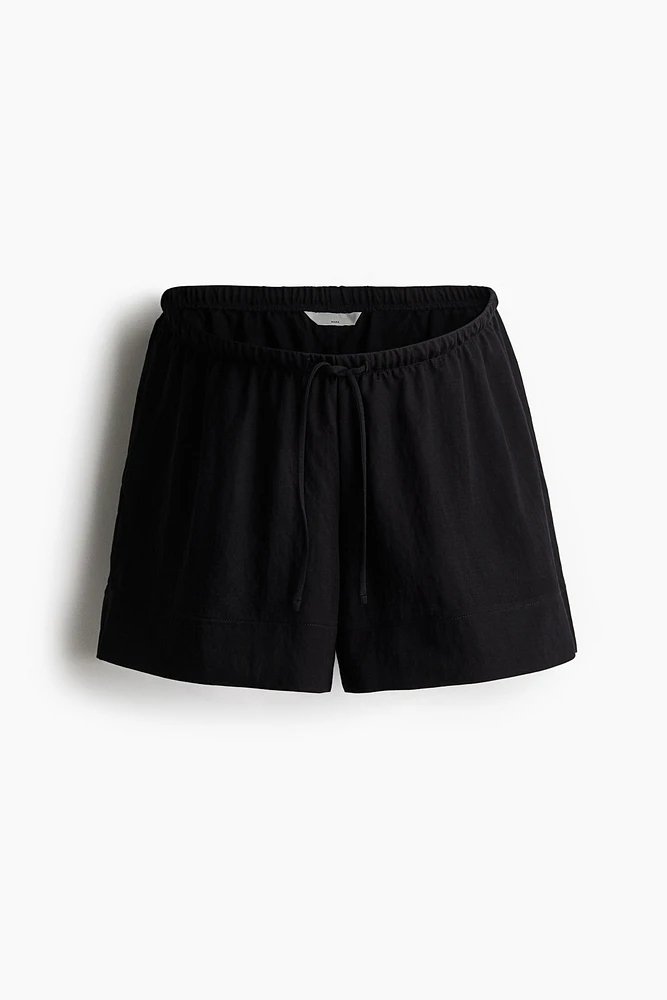 Loose-fit shorts in soft piqué made from a viscose blend with discreet side pockets and a slit at the hems. Low waist with an elasticated, drawstring waist for a comfortable fit both during and after pregnancy.