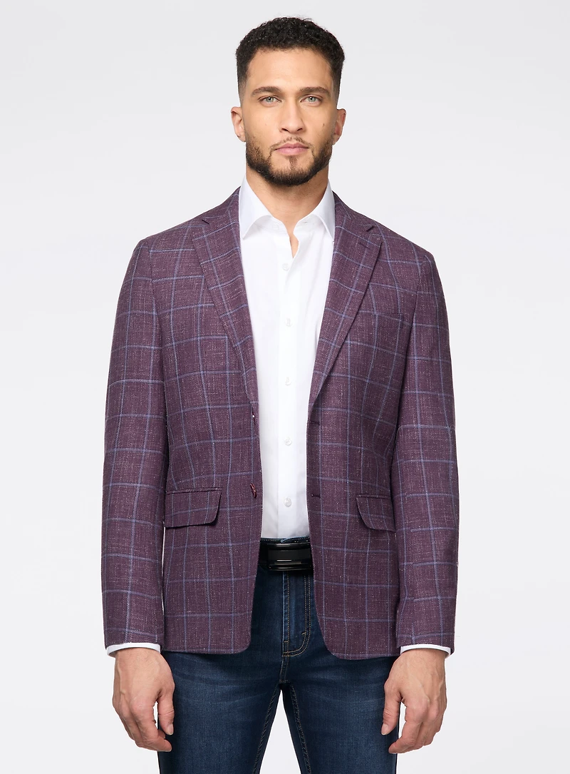 DESCRIPTION- Exclusively at Ernest- Slim fit- Check pattern- Flap pockets- Notched lapel- Two side vents- Half lined