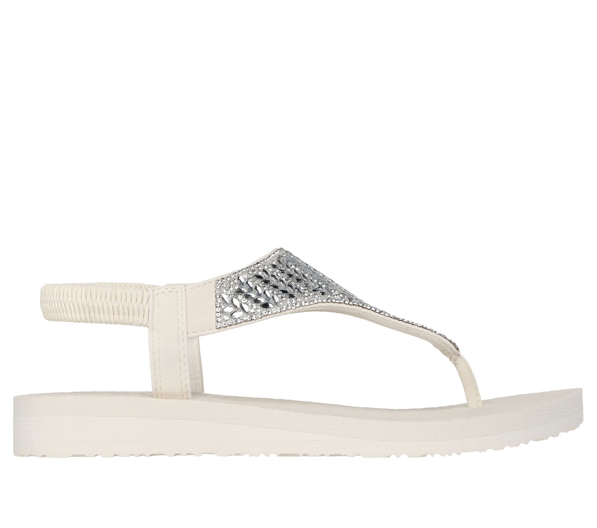 Add a little glam and comfort to your look with Skechers Cali® Glamorous Muse. This vegan pull-on slingback sandal features a synthetic upper with rhinestone embellishments and a cushioned Yoga Foam® footbed.