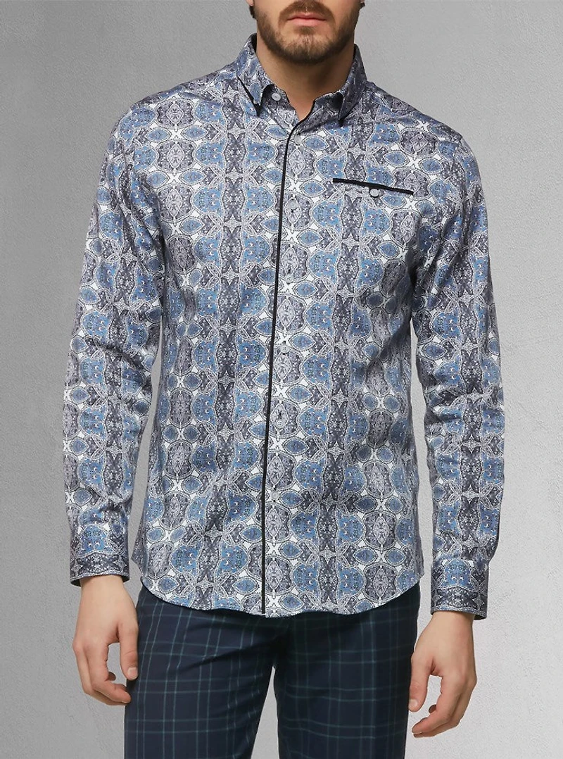 Description:This shirt is crafted from stretch mercerized cotton fabric with a floral symmetry print and contrasting trims. It features a semi-fitted cut that provides the perfect combination of comfort and style.Content:97% cotton / 3% spandexCare instruction:Machine wash in cool water. Do not use bleach. Tumble dry at low. Iron at warm temperature if needed on reverse side. Dry clean.Style:121333