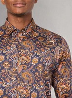 Description:Indulge in the luxurious feel of this men's stretch cotton shirt with a paisley print and anti-stain treatment. Experience the perfect balance of style and comfort with its semi fitted cut.Content:97% cotton / 3% spandexCare instruction:Machine wash in cool water. Do not use bleach. Tumble dry at low. Iron at warm temperature if needed on reverse side. Dry clean.Style:121541