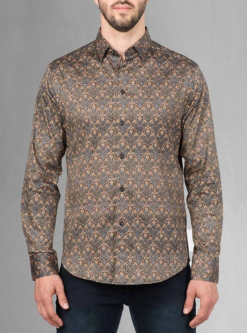 Description:Experience a whole new level of comfort and style with this men's shirt. Crafted from stretch bamboo fabric, featuring a striking baroque print and contrasting trims, this shirt is designed to provide a semi-fitted cut for a flattering silhouette.Content:60% rayon from bamboo / 37% polyester / 3% spandexCare instruction:Machine wash in cool water. Do not use bleach. Tumble dry at low. Iron at warm temperature if needed on reverse side. Dry clean.Style:121528