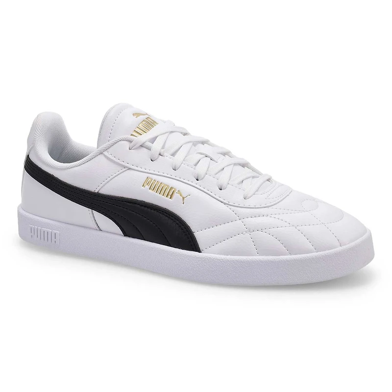 Baseketball-inspired, with clean, court-ready lines and a sporty silhouette, the Club II Indoor white/black lace up sneaker from Puma makes classic look cool. Featuring comfortable construction, branding and elements for added flair. The upper of this shoe is made with at least 20% recycled materials as a step toward a better future.