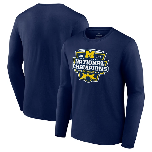 Men's Fanatics Navy Michigan Wolverines College Football Playoff 2023 National Champions Logo Long Sleeve T-Shirt