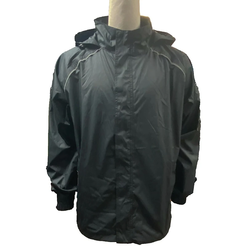 Men's packaway jacket. This waterproof jacket has taped seams and reflective piping. Enjoy the sun and outdoors in this relaxed style that can be worn for any outdoor activity.