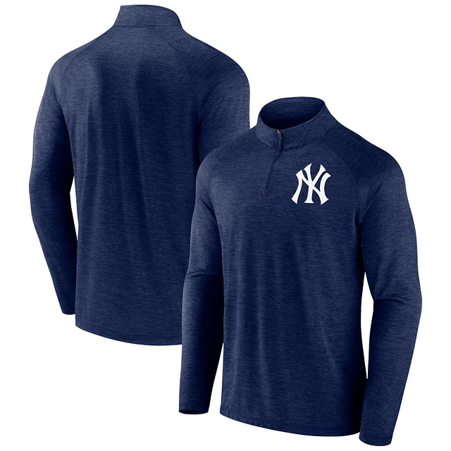 Women's Antigua Heather Navy New York Yankees Confront Quarter-Zip Pullover Top