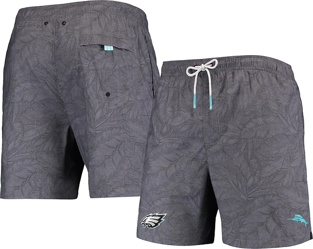 Men's Tommy Bahama Black Philadelphia Eagles Naples Layered Leaves Swim Trunks