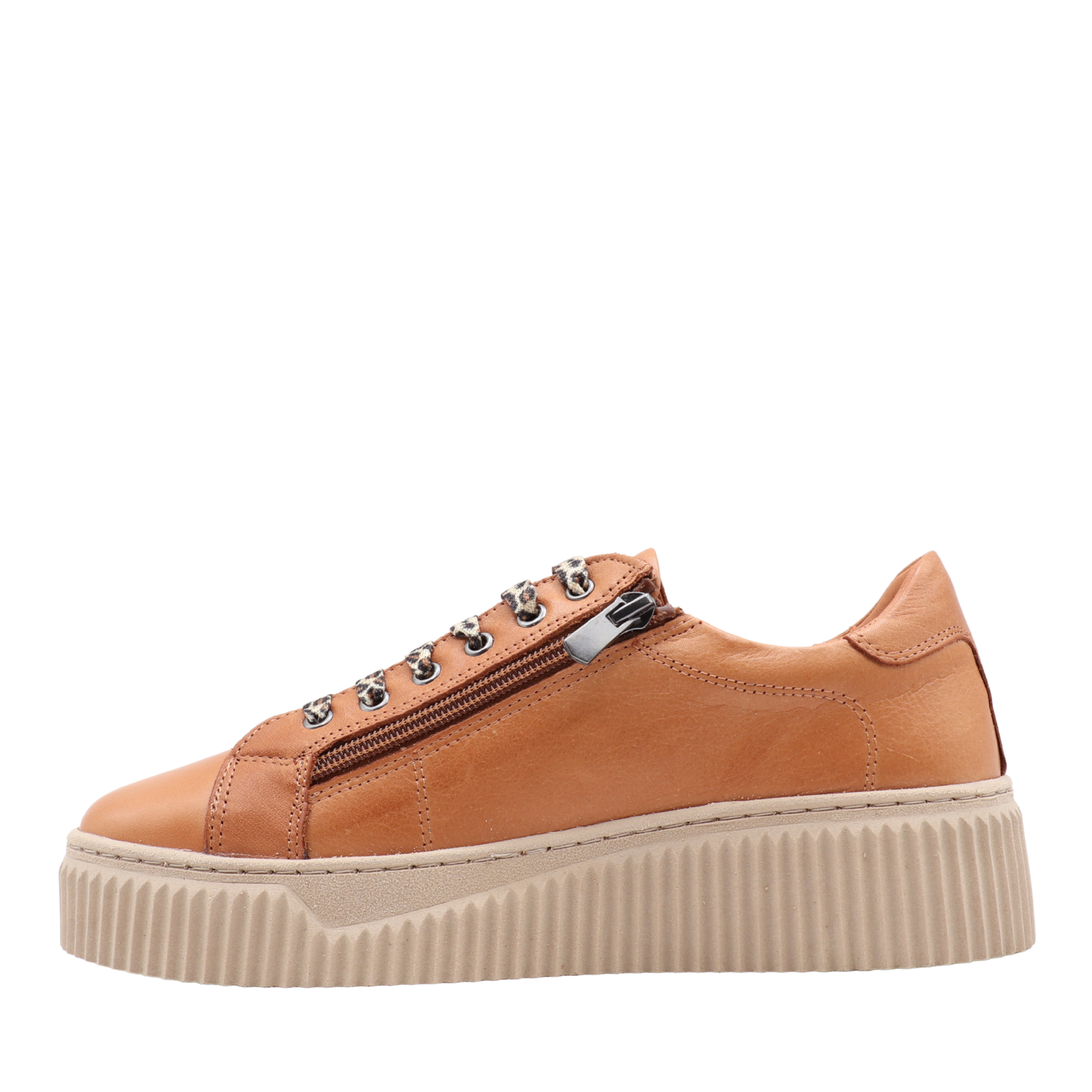 Modern comfort and assertive style: discover Mia, the trendy sneaker by Apropo , made in Europe. Available in black and cognac, this model features a thick, textured sole and metal eyelets that add a contemporary, urban touch. Practical and versatile, it comes with an extra set of laces to vary your looks according to your mood.