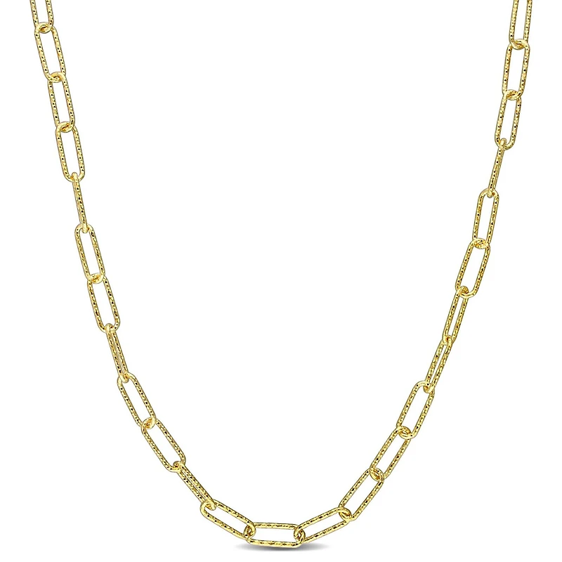Sparkle and shine with this splendid Miabella Paperclip Necklace. In shimmering yellow gold plated sterling silver, this exceptional 5mm wide oval link necklace is comfortably secured with a lobster clasp. A pair of jeans, a tank top and this exquisite necklace will give you the perfect look for an outing. Enhanced with a high polished finish, this captivating necklace is made in Italy and will give a dash of elegance to your jewelry collection.Miabella Jewellery: The perfect piece of jewellery is special and stunning, accompanying you for life. With over 30 years of experience in creating fine jewellery, Miabella has what you're looking for to mark a special occasion with something that sparkles. Miabella — Harmony in jewellery. Life is a symphony, celebrate it!