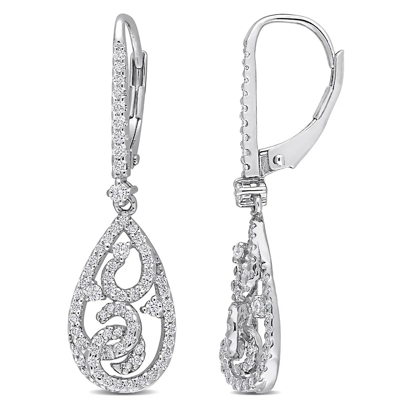 Miabella 4/5 Carat T.G.W. Created Moissanite Sterling Silver Filigree Teardrop Earrings