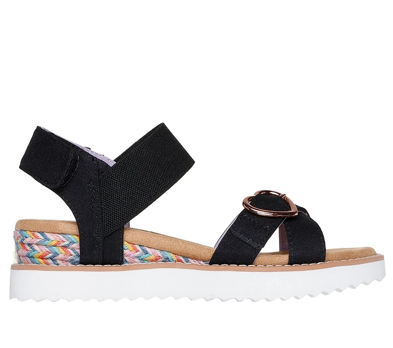 Style in breezy style and comfort with Skechers Miss Desert HI. This strappy comfort sandal features a woven fabric upper with a heart buckle and cushioned Skechers Memory Foam™ footbed.
