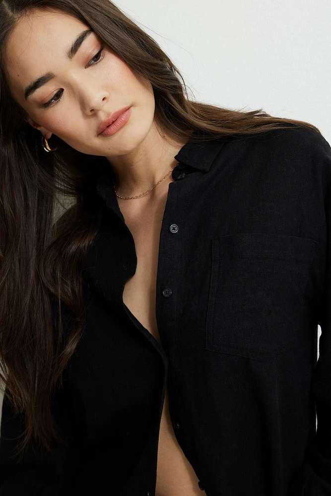 This shirt is made from an airy and lightweight linen, designed for an oversized fit. Style it with