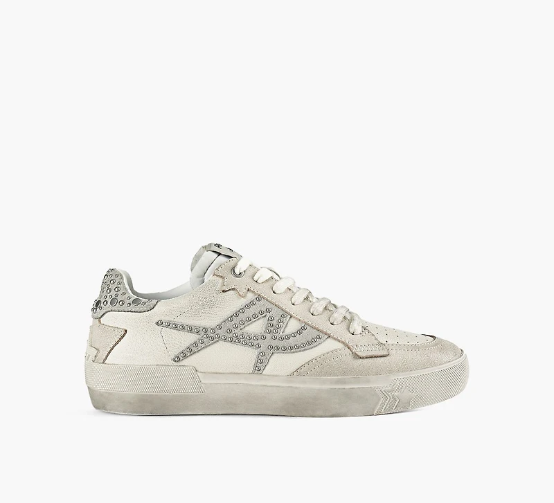 Blending sporty attitude with a touch of glamour, the ASH Moonlight Studs Vintage Sneaker elevates everyday looks with subtle shine. Crafted from premium leather with a lightly distressed sole, this lace‑up style features polished stud detailing that outlines the iconic logo. A cushioned footbed and rubber outsole deliver comfort with statement appeal.