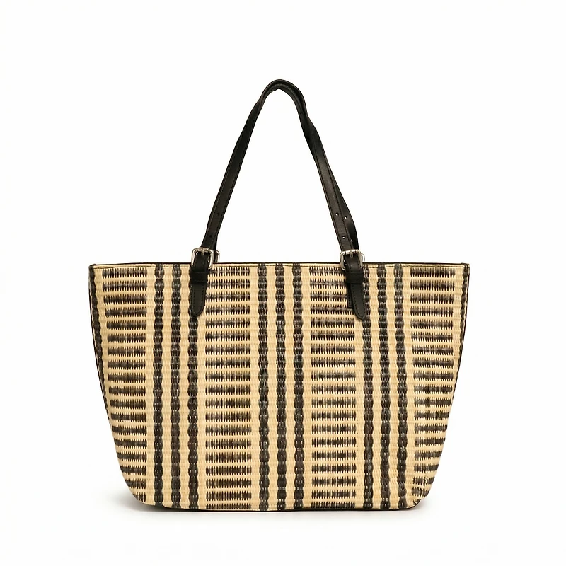 A blend of straw and leather for a natural and elegant look