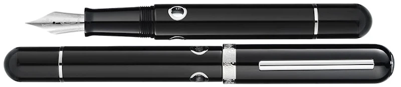The Nahvalur Nautilus combines vintage materials with modern designs. When fountain pens were first invented, all of them were made of a hardened rubber called ebonite. Today, hardly any pen companies are still using this beautiful material. The Nautilus series is bringing back this retro material while combining modern design elements. Three portholes are carefully crafted onto the body of the fountain pen to allow users to view the ink reserve. Specifications: Fountain pen material: Ebonite Trim: Chrome silver Nib: Stainless steel #6 size made by Nahvalur Filling mechanism: Piston-filling (bottled ink only) Fountain pen length, closed: 149 mm Fountain pen length, open (cap off): 133 mm