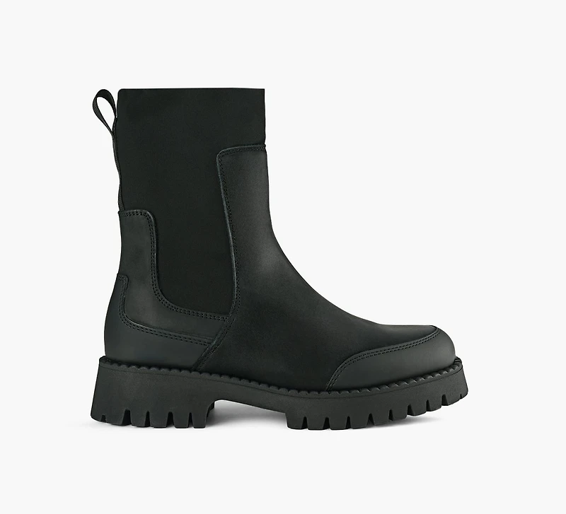 The Nahya High boot by Pajar delivers sleek winter protection in a high-shaft Chelsea silhouette. Crafted from waterproof nubuck and neoprene, it’s comfort rated to -20°C and features a removable foam insole for added warmth. The ultralight thermal rubber sole with traction lugs ensures grip and insulation, while the clean lines and pull-on design offer effortless style.