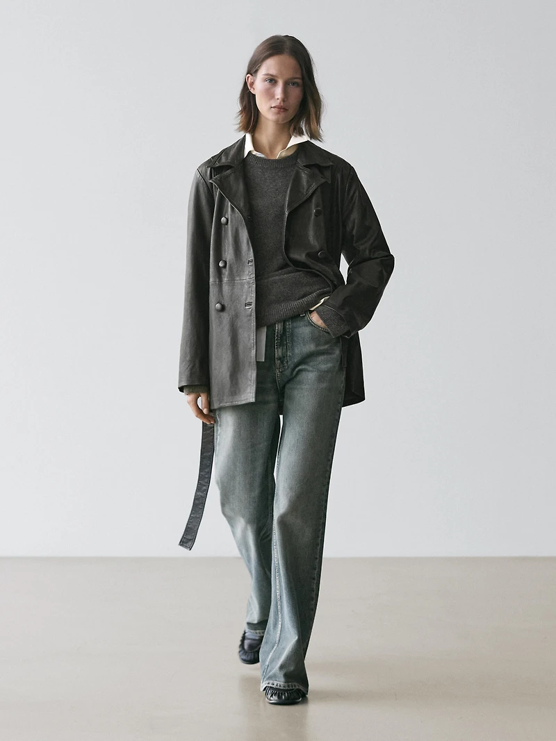 Nappa leather jacket with belt detail