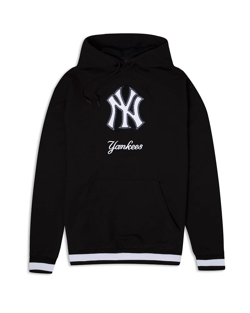 The black New York Yankees Logo Select hoodie features a chenille applique Yankees logo above an embroidered wordmark on the chest. Care and details Machine wash in cold water Delicate cycle Use only chlorine-free bleach Tumble dry on low heat, remove promptly Machine wash inside out Do not iron Do not dry clean Fabric: 52% polyester, 42% cotton, 6% elastane