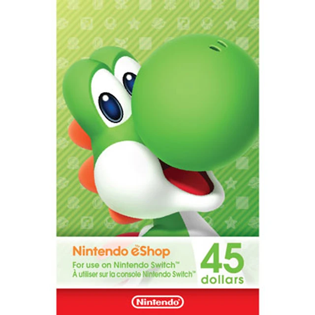 Treat yourself or a friend to eCash for the Nintendo eShop. This digital download gives you $45 of Nintendo eCash that can be used to buy and download tons of games directly from the Nintendo eShop, including new and classic titles, plus indie games, downloadable content, and more. Use the digital card on Nintendo Switch, Nintendo 3DS and Wii U systems. | Nintendo eShop $45 Gift Card - Digital Download