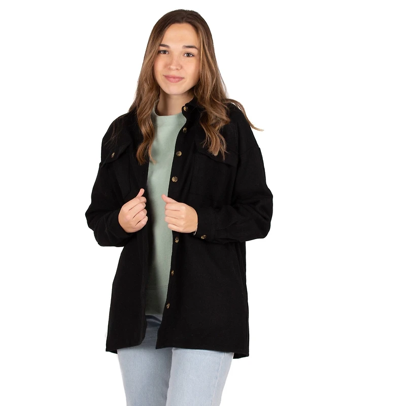 Noisy May : NMFlanny L/S Long Shacket BG Noos - Black