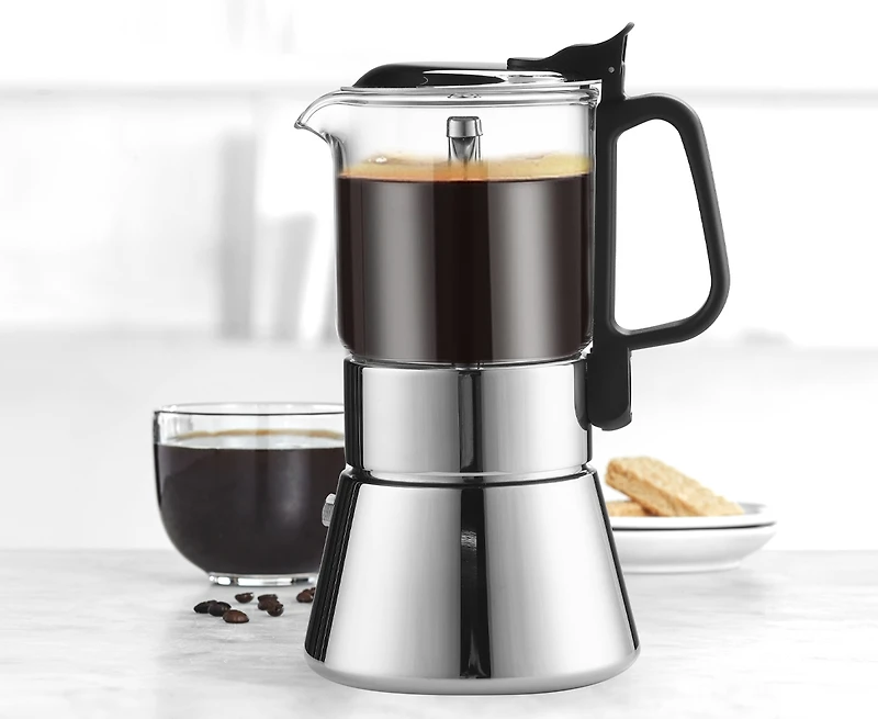 Brew perfect espresso with the Olimpico Espresso Maker. Stylish glass and stainless steel design, dishwasher safe. Ideal for all stovetops.