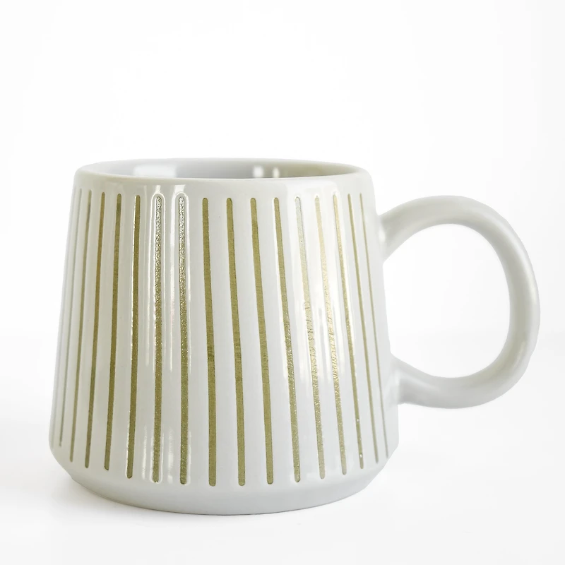 With its wide olive-colored vertical stripes, this modern design mug adds a graphic and elegant touch to your coffee or tea moments.
