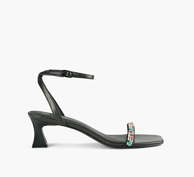 For the minimalist at heart with a penchant for colour, WISHBONE dreams up the Olivia sandals. Adopting a strappy profile reminiscent of the infamous 90s barely-there silhouettes, this style is stacked on a comfy block heel for a dramatic flourish. As a final note, its dainty top strap is adorned with rows of colourful beads, perfect for incorporating a pop of hue to your ensemble.