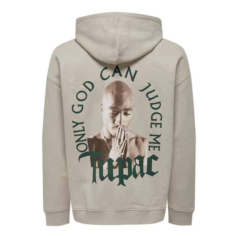 Arborez l'héritage du hip-hop avec ce hoodie oversize inspiré par une légende. Le design iconique arbore une photographie en noir et blanc au dos avec un texte emblématique, complété par une sérigraphie minimaliste à l'avant. Coupe décontractée, capuche ajustable avec cordon de serrage, poche kangourou et manches longues aux poignets cannelés pour un confort intemporel.